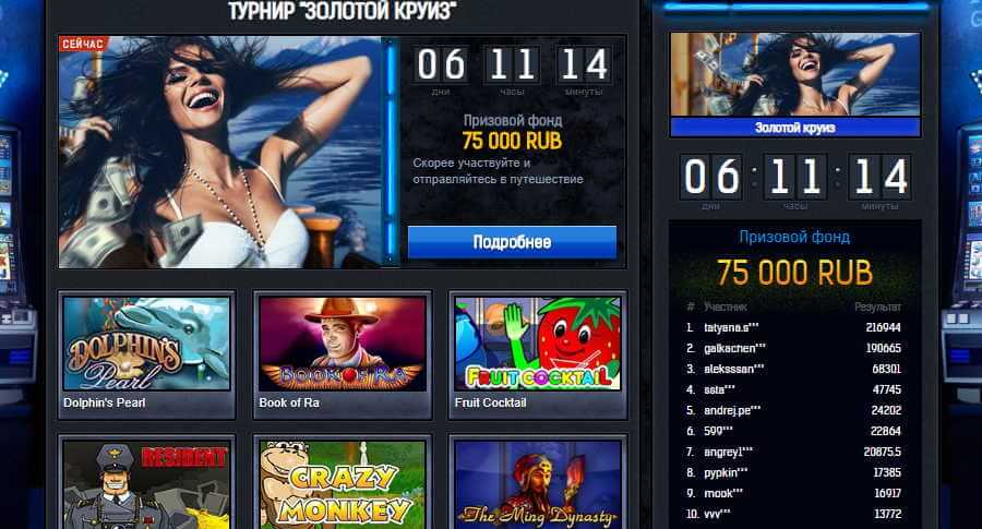 Получить определенные дополнительные средства можно и благодаря турнирам, которые регулярно проводятся в заведении. Каждую неделю десятки фанатов азарта вращают в определенной категории слотов и самые успешные из них движутся вверх по турнирному рейтингу. В итоге остается всего лишь 10 счастливчиков, которые делят между собой призовой фонд.