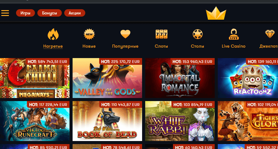 • Игры:Слоты, настольные, игры с живыми дилерами, видеопокер