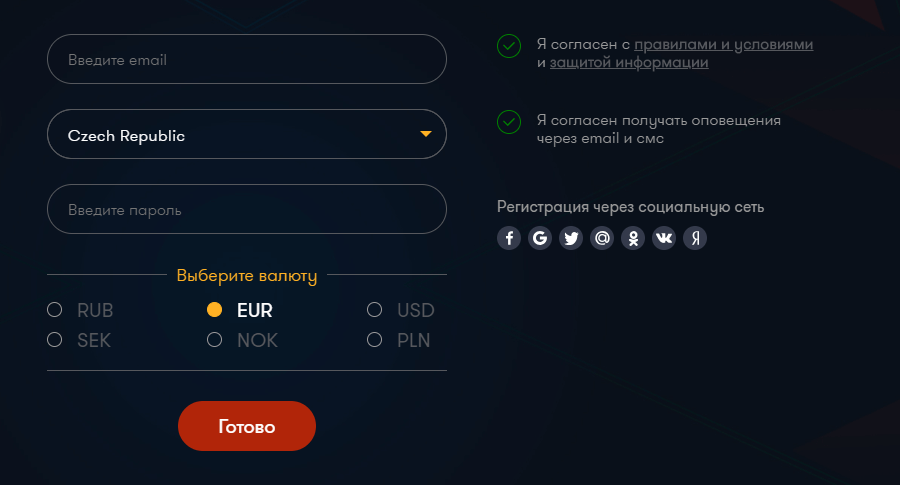 Регистрация через зеркало такая же простая, как и на официальном сайте. Потребуется указать свой логин (электронную почту) и придумать пароль. А после подтвердить адрес почты. Всего пара кликов отделяют каждого от почетного звания "Ирок Френк казино".