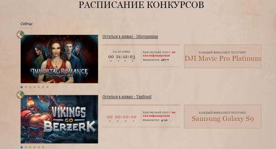 Также действует уникальная система получения фриспинов. При первом пополнении счета, Вы получаете 20 бесплатных вращений, и по 20 фриспинов каждый день в течении 9 дней. Всего вы получаете 200 бесплатных вращений.