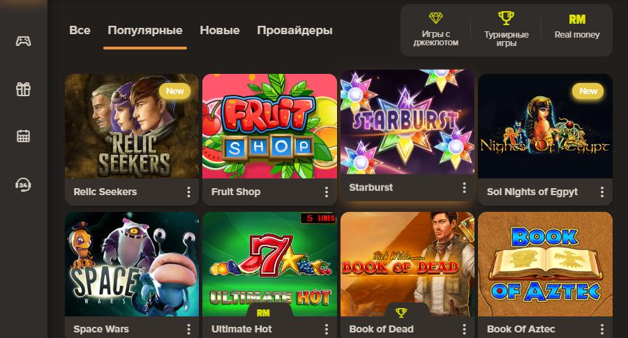 - Игры:Более 1000 слотов, живые дилеры, настольные, видеопокер