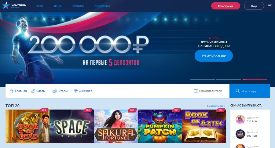 ✅Играть с бонусами в онлайн казино Чемпион на деньги с выводом